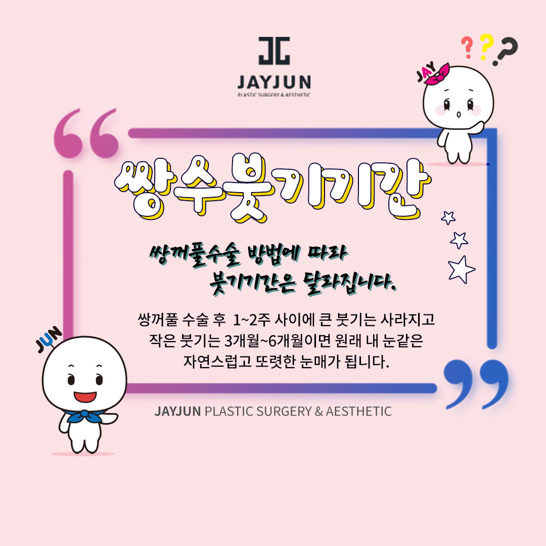 호감 가는 인상으로 개선하기 위해서 쌍꺼풀 수술은 성형수술도 아니라는 인식이 강한데요. 그만큼 쌍꺼풀 수술은 우리에게 흔한 성형수술로 자리 잡았기 때문이 아닐까 싶어요. 아무리 흔한 수술이지만 수면마취나 국소마취를 통해 진행이 되기 때문에 언제부터 일상생활이 가능한지 쌍수 붓기 기간은 얼마나 되는지 알고 싶어 하시는 분들이 본원으로 문의를 많이 하시더라고요. 그래서 오늘 제이준성형외과에서는 쌍수 회복기간과 쌍수 후 붓기가 얼마나 지속되는지에 대해 자세히 알려드리도록 할게요..